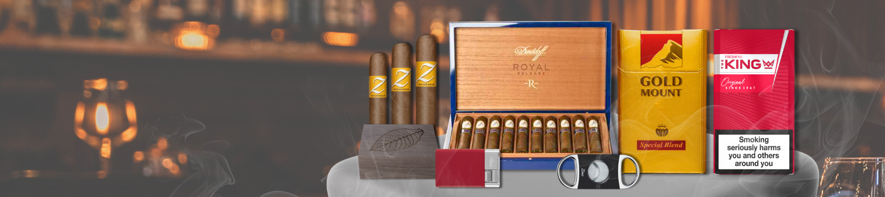 Offering luxury brands like Davidoff Cigars, Zino Accessories, and Gold Mount & King and Corset Cigarettes.